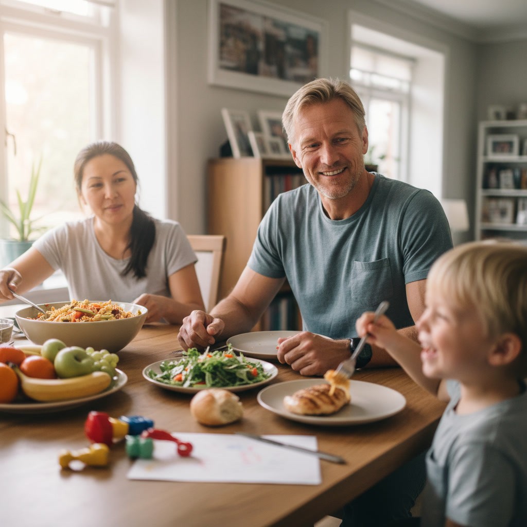 The family calendar shapes dinners in two ways: who is home, and how demanding the day already is. On heavier days effort has already been spent earlier in the week. Leftovers and double-cooked meals appear without needing a decision.