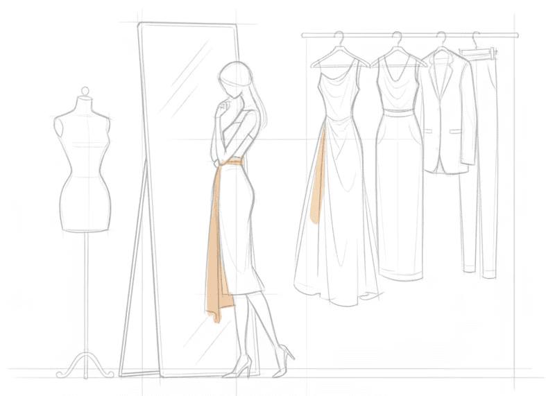 It checks her calendar to understand the day ahead. A meeting. A dinner. A gallery opening. It reads the venue, the dress code, the weather, and the social tone, then surfaces outfits that fit both the moment and her identity.
